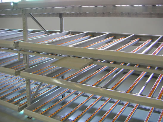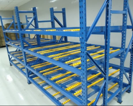 1、滾輪式貨架又叫流利式貨架,此類型貨架通常由中型橫梁式貨架演變而成; 2、貨架每層前后橫梁之間設(shè)置滾輪式鋁合金或鈑金流力條; 3、呈一定坡度(3o左右)放置,利用貨物自重,實現(xiàn)貨物的先進先出,存取方便; 4、適于裝配線兩側(cè)的工序轉(zhuǎn)換、配送中心的揀選作業(yè)等場所,可配以電子標簽,實現(xiàn)貨物的信息化管理; 5、普通貨架只能單純的滿足貨物擺放的需求,相比之下,流利式貨架獨特的結(jié)構(gòu)可主動滿足先進先出(FIFO)的需求,更有節(jié)約空間、提高效率的特性,是工廠生產(chǎn)線旁看板管理幾物流中心揀選作業(yè)的最佳選擇。 6、單元貨架每層載重量通常在1000kg以內(nèi),貨架高度在2.5米以內(nèi)。 |